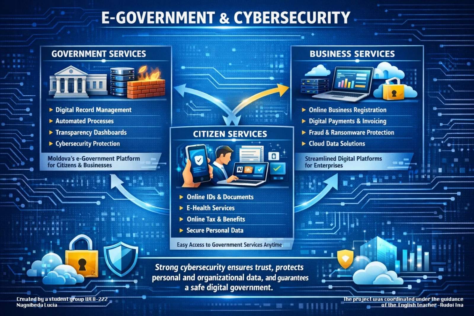 Elevii anului 4 de la programul de formare profesională Administrarea aplicațiilor web, grupa Web-222 au desfășurat o activitate aplicată dedicată temei **Securitatea cibernetică** în cadrul orelor de Limba engleză aplicată în domeniul TIC, ghidați de profesoară Rudoi Ina. Elevii au demonstrat interes, implicare și o foarte bună înțelegere a provocărilor din mediul digital actual.